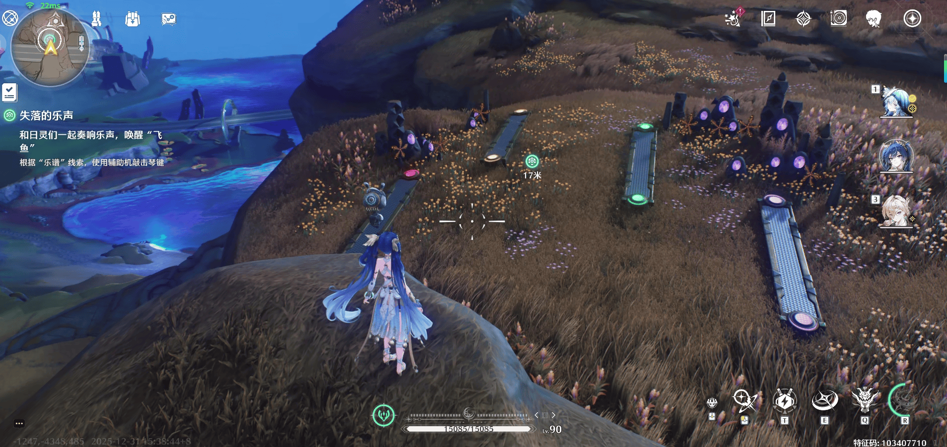 找到营地里的日灵,对话,捕捉音符(这里我用的琳奈,同样只需要一直平A就行)