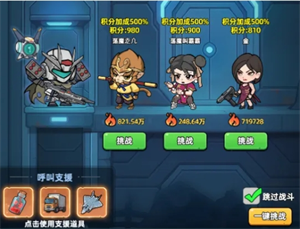 ①肾上腺素:挑战阵亡后,复活一次回复所有疲劳值,重新随机三位敌人。活动结束时该道具转换为100钞票。