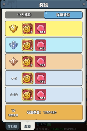 排行奖励分为个人奖励和联盟奖励,个人排名第一的玩家可以获得[石油镇·2跨领地](PVP战斗开始4秒内,我方全体可累计免疫10次伤害,免疫伤害结束前获得15%PVP伤害增加,结束后获得15%PVP伤害减免,持续8秒,该效果每30秒可触发一次)。