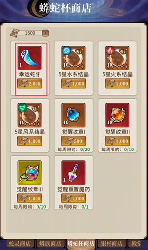 推荐购买幸运蛇牙,后期应该要换觉醒材料