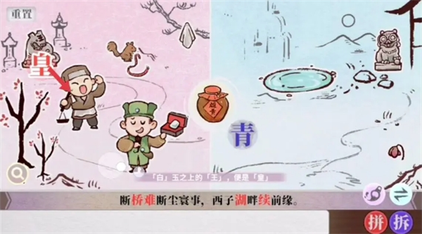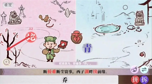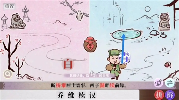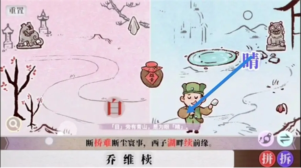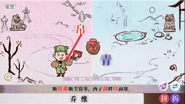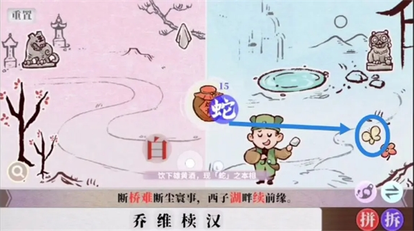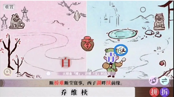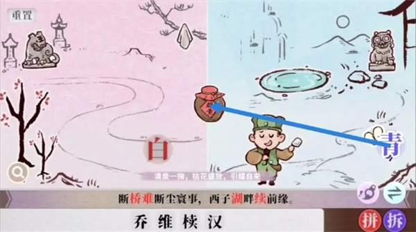 字里人间游戏里第四关难度提升,玩家还是需要根据之前的拼字、找字等 方法来完成“断桥难断尘寰事,西子湖畔续前缘”这个句子的组成,以下是第四关的具体完成方法分享。