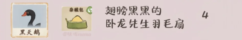 关键描述:翅膀黑黑的,卧龙先生羽毛扇