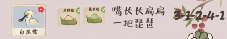 关键描述:嘴长长扁扁,一把琵琶