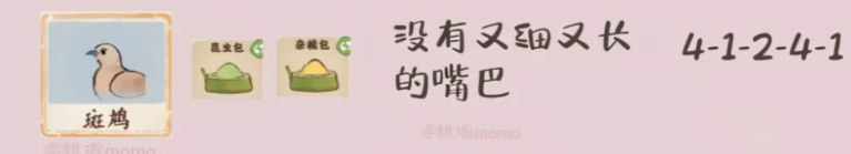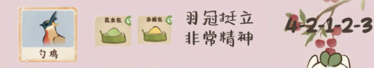 桃源深处有人家倦鸟汀各个鸟类有对应喜爱的食物,每个鸟的页面可以看到对应喜好食物,杂货铺购买对应食物并放置,等待收集对应鸟类线索,集齐线索后,再根据关键描述文字,依次选择线索序号即可解锁对应鸟类。下文是对应各个鸟类的喜好食物以及对应线索答案内容!