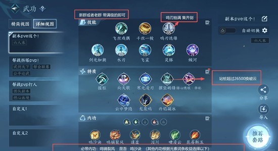 必带内功:鸣沙诀 鸣镝裂风,昆吾(其他三个内功根据元素与内功词条收益调整即可)