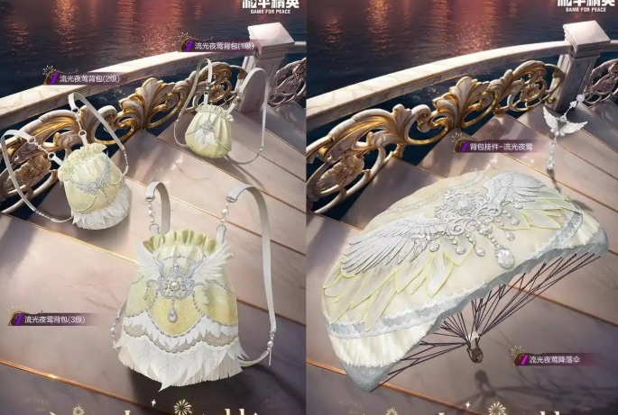 防护装备:流光夜莺头盔(1/2/3级)、背包(1/2/3级),均延续主题色调。