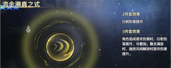 流金溯真之式:2件衍射伤害+10%,5件普攻叠3层后共鸣解放额外+40%普攻伤害,适配琳奈高频普攻输出机制,主C定位首选;