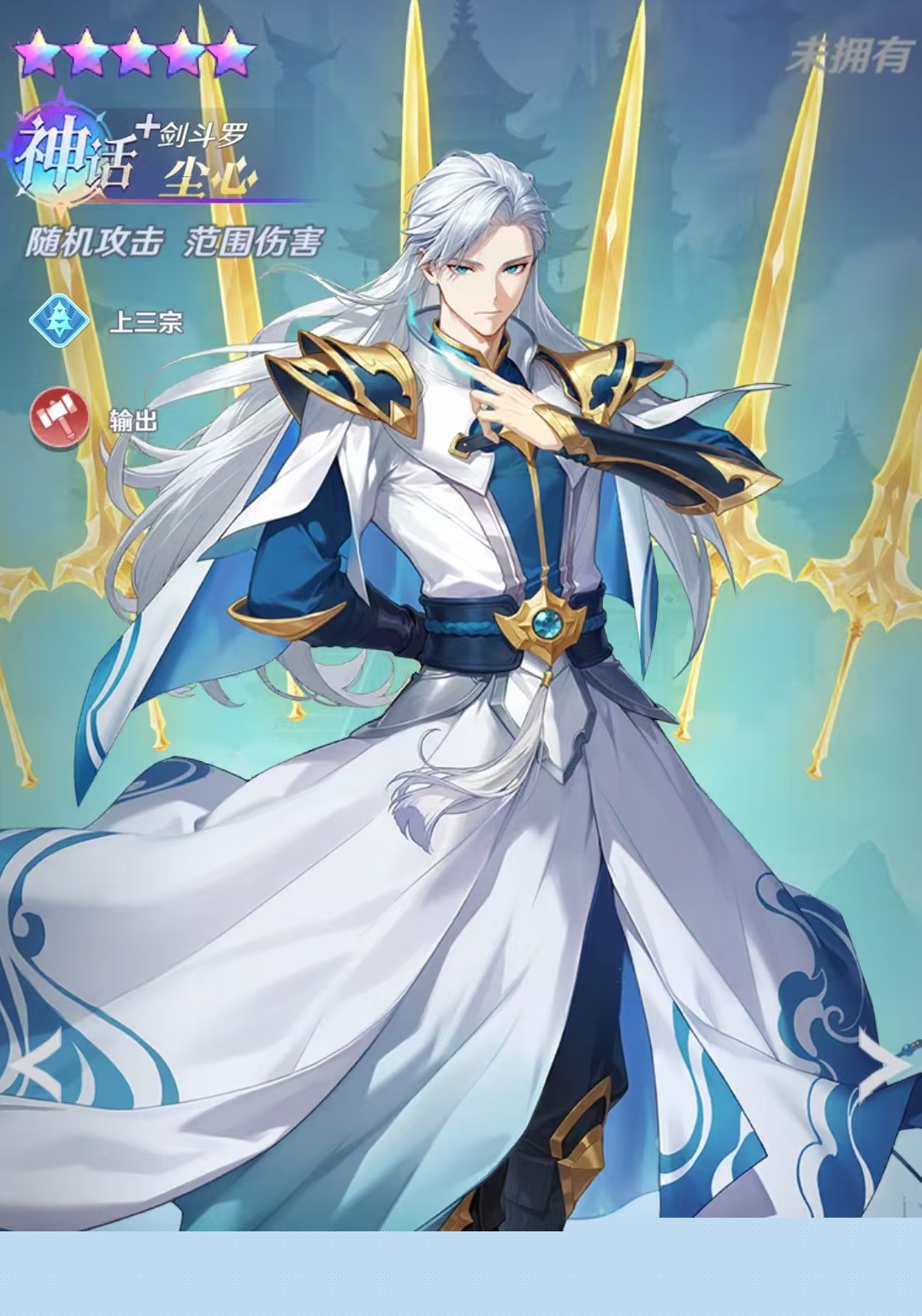 尘心位列第三,以高机动性范围打击见长。其大招召唤七杀剑实施群体伤害,二技能飞剑可随机锁定敌方单位进行穿刺。专属被动不仅提升所有技能基础伤害,更使普攻释放飞剑数量翻倍,并同步提高普攻与技能暴击率。在前期资源有限阶段,该角色对全队伤害的全局加成尤为关键。
