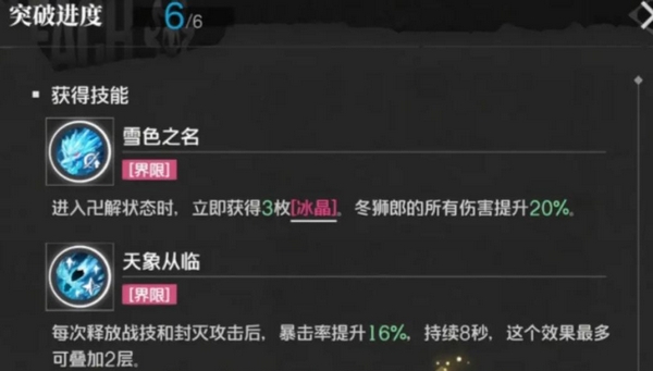 角色核心输出集中于卍解开启后的普攻循环,必杀技承担关键爆发段,而战技主要服务于增益构建——提供暴击率加成,并非主要伤害来源。因此,其战斗节奏强调状态维持与高频普攻衔接,对充能效率和暴击属性有明确需求。若未达到2命+专武配置,暴击率容易陷入短缺,导致普攻触发不稳定、整体DPS波动明显;而达成2命(提升32%暴击率)与专武(额外30%暴击率)后,暴击覆盖率显著跃升,输出质变清晰可见。