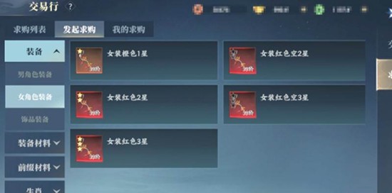 如果在交易行没有找到满意的商品,可以转向求购专区。进入求购列表,选择对应品类的道具,即可直接发起求购需求,静候其他玩家响应。