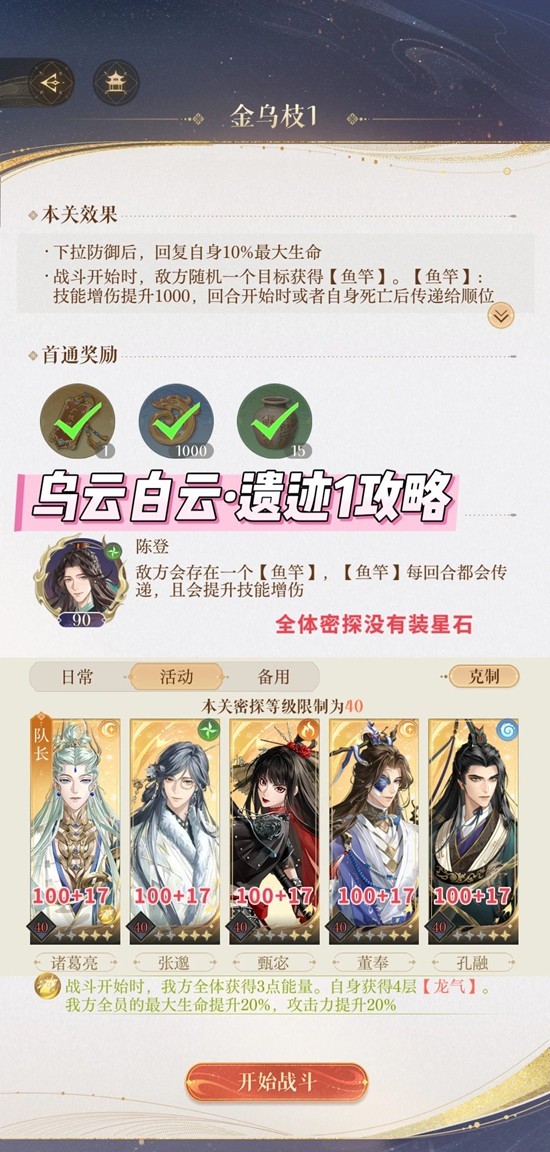 如鸢傅融乌云白云地宫 地下遗迹1通关配队攻略