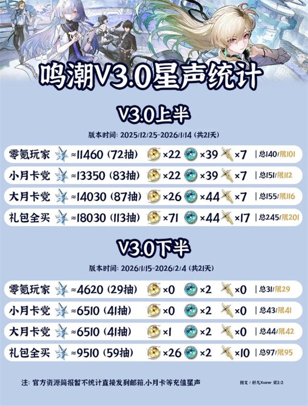 本次3.0版本星声数量为基于当前官方已公布内容的预测统计