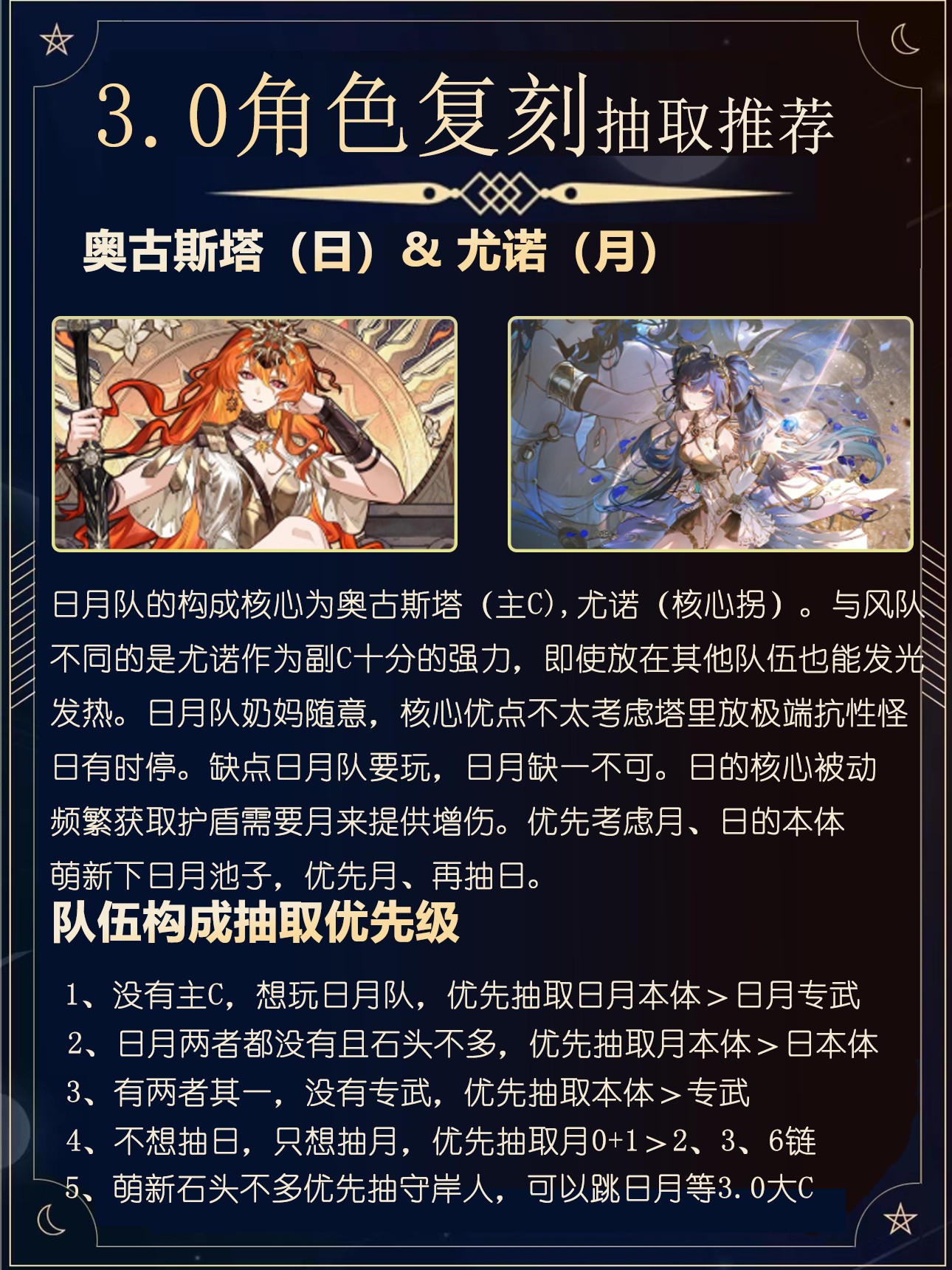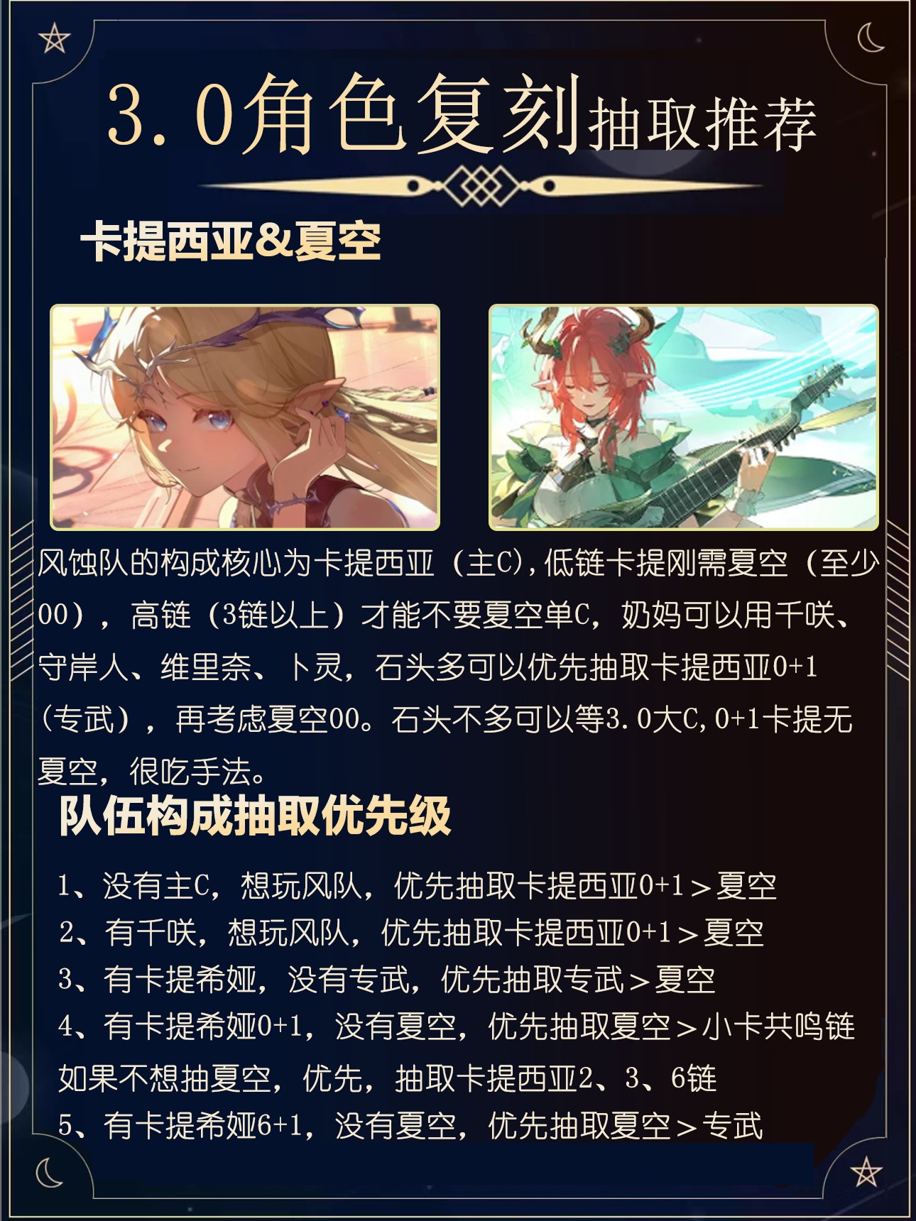 建议萌新先抽取主C,后面有石头优先抽守岸人,最后再抽副C。