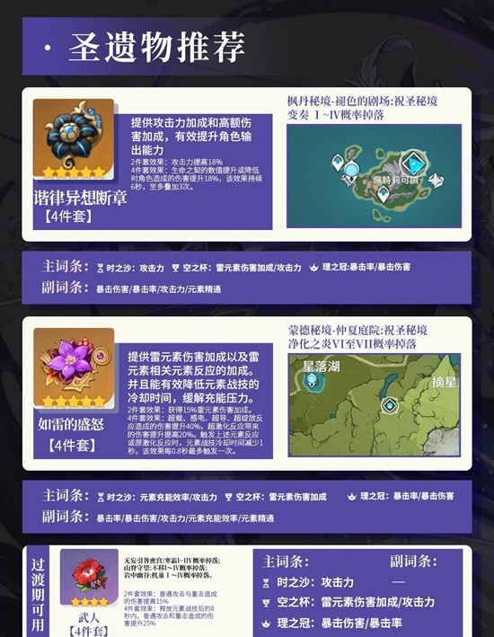 圣遗物:①谐律异想断章 ②如雷的盛怒③武人(过渡)