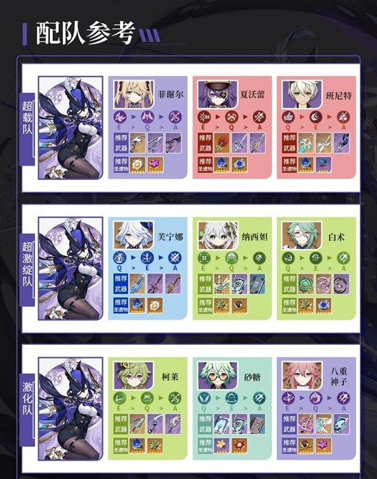 ②超激绽队:克洛琳德,芙宁娜,纳西妲,白术