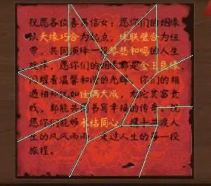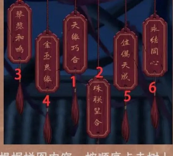 8.点击亭子中的柜子,结合大门两侧的对联,完成柜子左侧机关,左为喜成連理,右为永结同心。