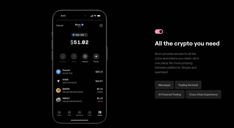 Blum 背后是一支在加密货币行业拥有丰富经验的团队,该项目通过社区奖励和空投迅速积累了用户基础。其功能包括交易终端、自动交易机器人以及用于发布新代币的工具--所有这些都在 熟悉的界面中实现。Blum 希望通过专注于便捷性和社区参与度,在日益拥挤的加密货币市场中脱颖而出。