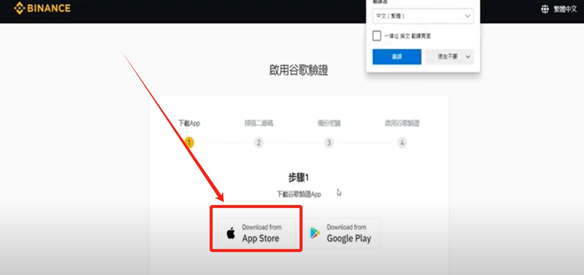 接下来打开币安的网页,点击【下一步】。他会叫你要备份这个金钥,把这个字符抄在纸上备份好。之后你手机丢失,还是可以把它复原。备份好之后,点击【下一步】。
