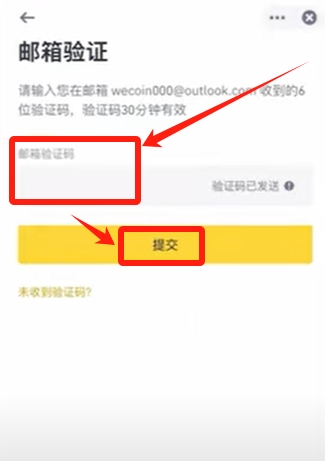 输入币安给你邮箱发的验证码。去邮箱查看一下,如果收件箱找不到,大概就在垃圾箱。输入之后,点击【提交】。