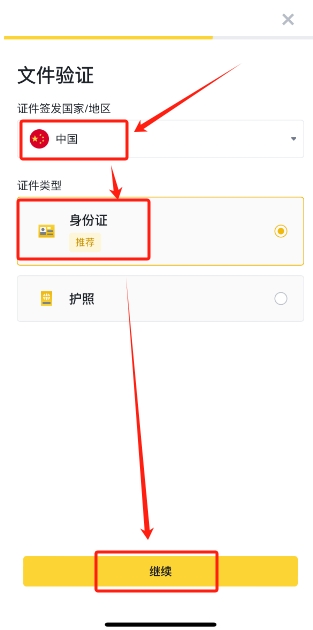 再选一遍国籍【中国】,点击【继续】。