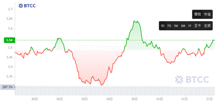 VIRTUAL 币当前的流通供给量为655,568,776.72 VIRTUAL,过去24 小时交易量为$320,497,522.02,以下是VIRTUAL 价格走势图: