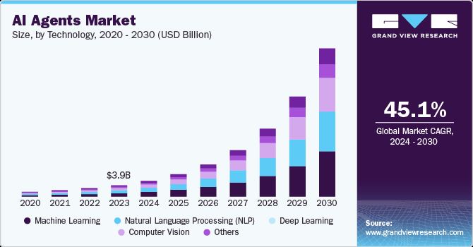 Grand View Research 预测,从2024 年到2030 年,全球人工智能代理市场规模预计将以45.1% 的复合年增长率成长。此外,云端运算的日益普及也使得不同企业更容易创建人工智能代理。