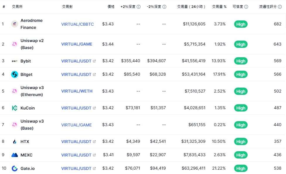 在开始购买之前,请确保您的平台支持VIRTUAL。以下为当前上架VIRTUAL 币现货的交易所榜单: