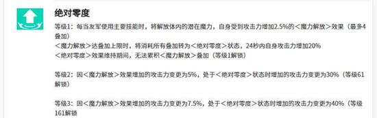 是一个与队友联动的核心机制。当队友使用主要技能时,勒内白银能释放自身的魔力潜力,使攻击力提升2.5%,这个效果被称为魔力解放,最多可叠加4层。当叠加层数达到上限,所有消耗的层数会转化为绝对零度状态,持续24秒,期间为勒内白银提供20%的攻击力加成。该状态的层数可以通过特定方式叠加,但在绝对零度状态持续期间,无法再次累积魔力解放层数,更高的百分比加成需要通过提升角色等级来解锁。