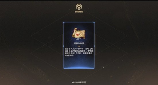 1.猎杀牛头怪:当宇宙碎片大于800时,出现【商店】区域的概率大幅提高。奇物商店额外刷新2个奇物,且有概率出现3星奇物