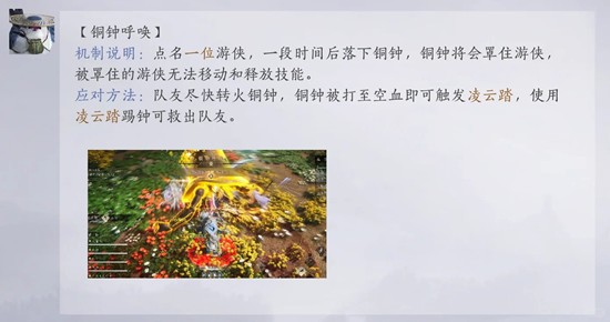 打更人1-1:铜钟呼唤,需要携带凌云踏,队友被红圈点名后被钟罩住,队友集火打碎钟后,面朝钟会出现感知技,踹一脚把队友就出来一次就行。不知道感知技能凌云踏是啥的参考P9