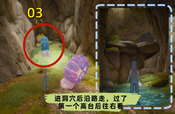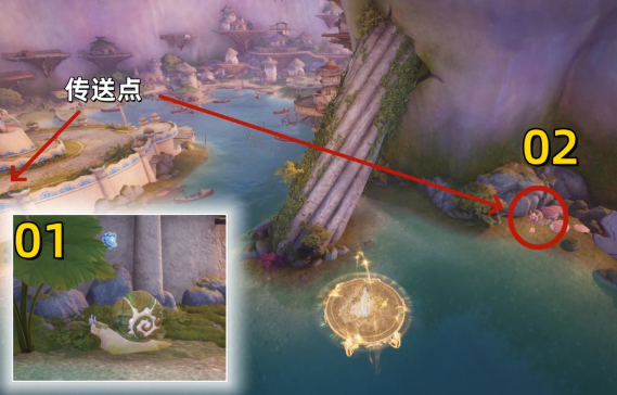 一层中转站传送点过去,最底下岸边 蜗牛瀑布崖底洞窟