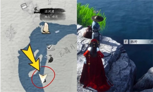 2、顺着河道前行,找到韩野并与其对话。对话过程中会察觉异常。