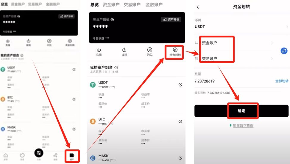 今天教大家如何在欧易(OKX)交易所进行现货交易。首先我们点击首页右下角的“资产”,上方选择“资金划转”,比如说你刚在欧易(OKX)市场里买了U,一般买了之后就在资金账户的,需要把它转到交易账户来,点击【确定】。U在交易账户才能进行买卖,买卖各种加密货币的。
