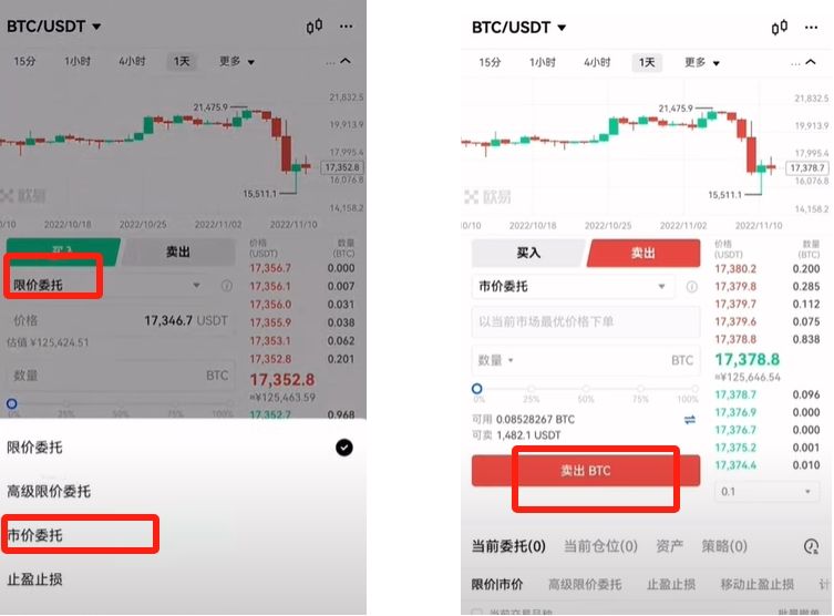 比如说忽然某个币暴涨了,你怕买不上了 ,你就把限价委托切换到市价委托,因为他默认是限价委托的,我们把它切换到市价委托,然后马上买进去就能买到了。或者忽然暴跌了,你手上有个币要跑掉了,就直接切换到事件委托点击卖出,就可以直接可以卖掉了。