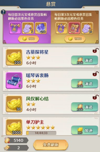 悬赏系统为离线收益型玩法,玩家选定武将后即可派遣执行任务,全程无需操作。任务时长依品质而定,高品质悬赏耗时更久,且对出征武将的属性强度要求更高。已派遣武将无法参与其他悬赏任务,亦不产生体力或技能冷却消耗。若希望提前完成,可消耗元宝进行加速;加速比例与任务剩余时间成正比。