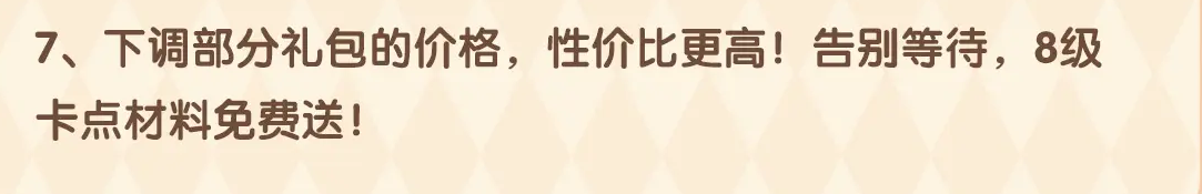 7、下调部分礼包的价格,性价比更高!告别等待,8级卡点材料免费送!