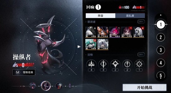 这样我们记录一组混乱16流血队的回响后,开始打boss。打直面梦魇要积分过关,所以把流血队核心成员放到boss旁边全力打,清杂比如萦萦可以放到局长旁边守护局长。