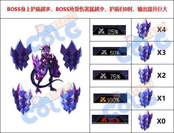 常驻自带大量减伤的BOSS,需要时刻破掉BOSS护盾,否则BOSS非常肉其他机制威胁不大,需要注意的是,开场BOSS没有护盾所以开场可以先来一套;