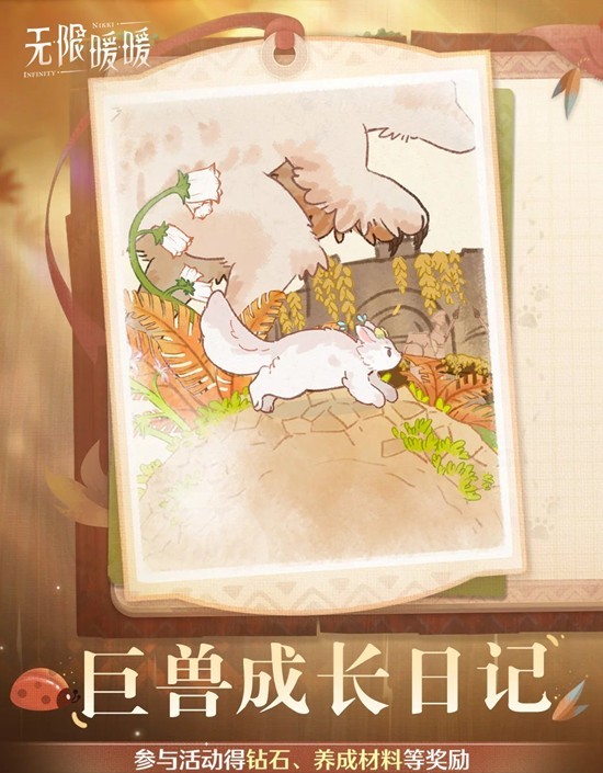 搭配师可前往暖茸之家,开启小巨兽的「巨兽养成计划」,完成活动大厅内的六种类型的养成任务,精心培育小巨兽,完成后可领取【钻石】、【养成材料】等奖励。