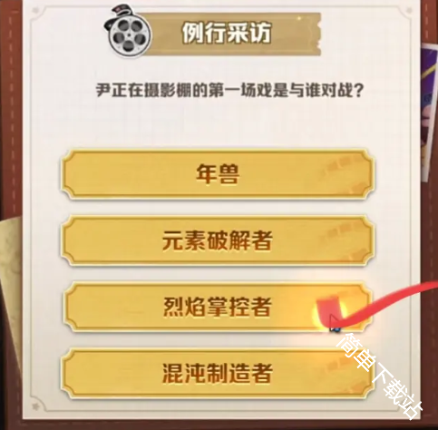 2、尹正在摄影棚的第一场戏是与谁对战?