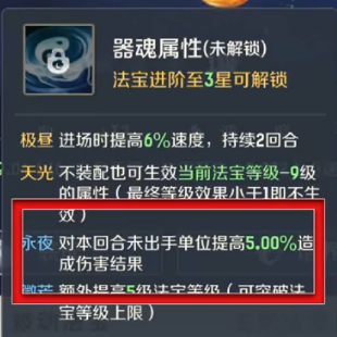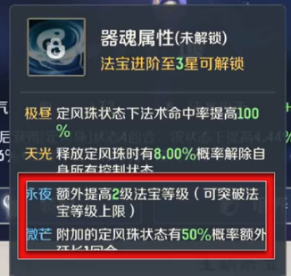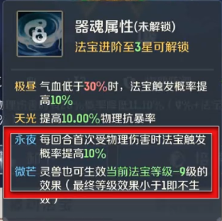 被动法宝:风火轮,器魂选择微茫或极昼;锁子黄金甲器魂选择天光或永夜