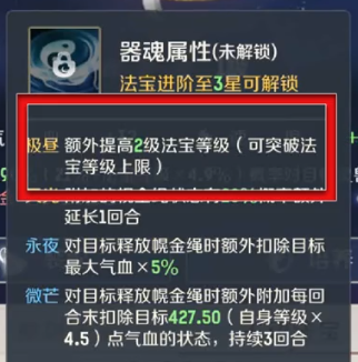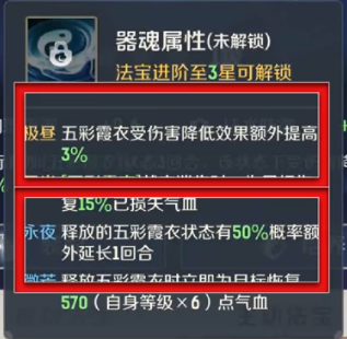 主动法宝:五彩霞衣,器魂选择极昼或永夜;幌金绳器魂选择极昼