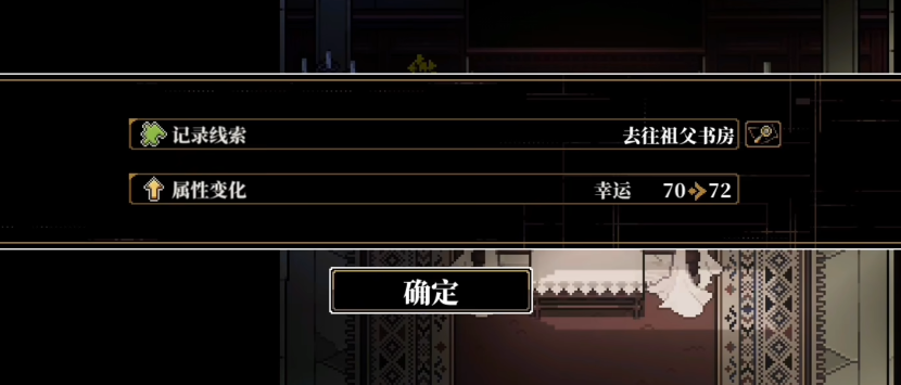 3、精准定位推动剧情的关键线索。部分重要线索不仅承载叙事转折,更直接关联幸运值成长。例如在“指引章节”中,成功进入祖父书房即可获得+2幸运值;类似设定会在其他剧本中以不同形式复现,系统会在获取时明确提示数值变化。关注对话关键词、环境异常细节及物品组合逻辑,有助于高效识别此类增益节点。