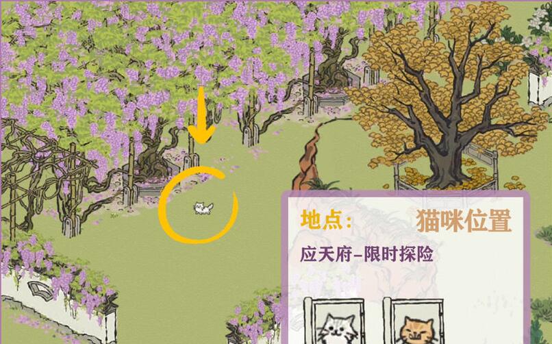 江南百景图应天限时探险中,桃花树坑任务,需要玩家找到一只叫做绝美的小猫,很多玩家没找到,江南百景图猫咪在哪?下面给大家带来江南百景图猫咪位置介绍,一起看看吧。