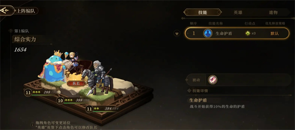 2、技能配置:自带“生命护盾”技能,无需升级任何技能,仅靠基础护盾效果即可辅助抗伤。