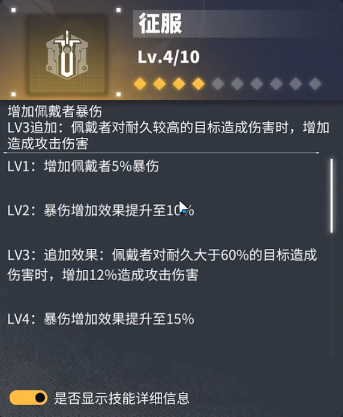2、LV3追加效果为佩戴者对耐久较高的目标造成伤害时,增加造成攻击伤害。