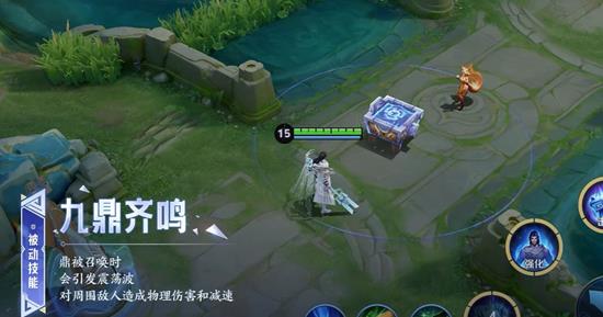 短蓄力后将鼎砸向指定区域,命中英雄生成岩壁阻挡走位,岩壁存在期间队友触碰获得护盾,敌人穿越则受减速,地形战术直接拉满。