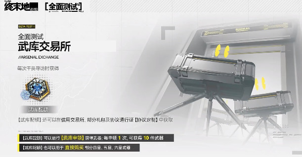 每一次参与干员寻访,不管是基础寻访还是特许寻访,玩家都可以拿到武库凭证。要是觉得积攒比较慢,也可以使用协议通行证里面的配给兑换,协议通行证也会分成三类,哪怕是免费的基础配给,也可以获得足够的材料去更换凭证,对零氪党而言,也无需过于慌乱。第2步自然就是选择武库单抽或者是10连抽,在拿到武库凭证之后,可以进入到武库交易所去抽取。每一次抽取会消耗一个凭证10连抽就会给10件武器,建议优先选择10连抽,那获取好货的概率更稳一些。