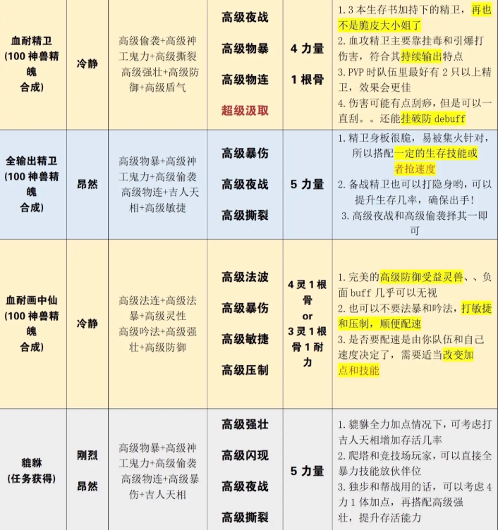 备选技能:高级暴伤+高级汲取+高级夜战+高级撕裂