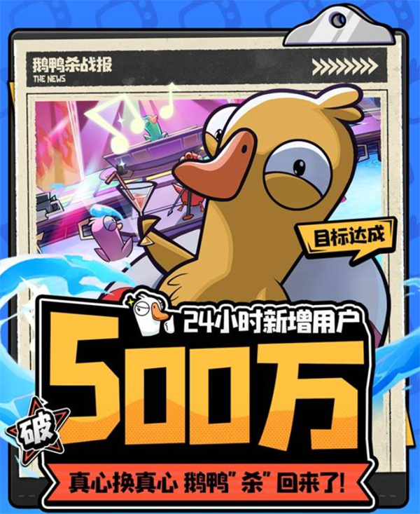 《鹅鸭杀手游》开服迎来玩家数量新突破,官方宣布新增人数突破500万。为感谢广大玩家的支持,官方同步放出了全新福利兑换码。下面小编整理了一份鹅鸭杀手游500万新增答谢兑换码分享,希望能够帮助到各位。